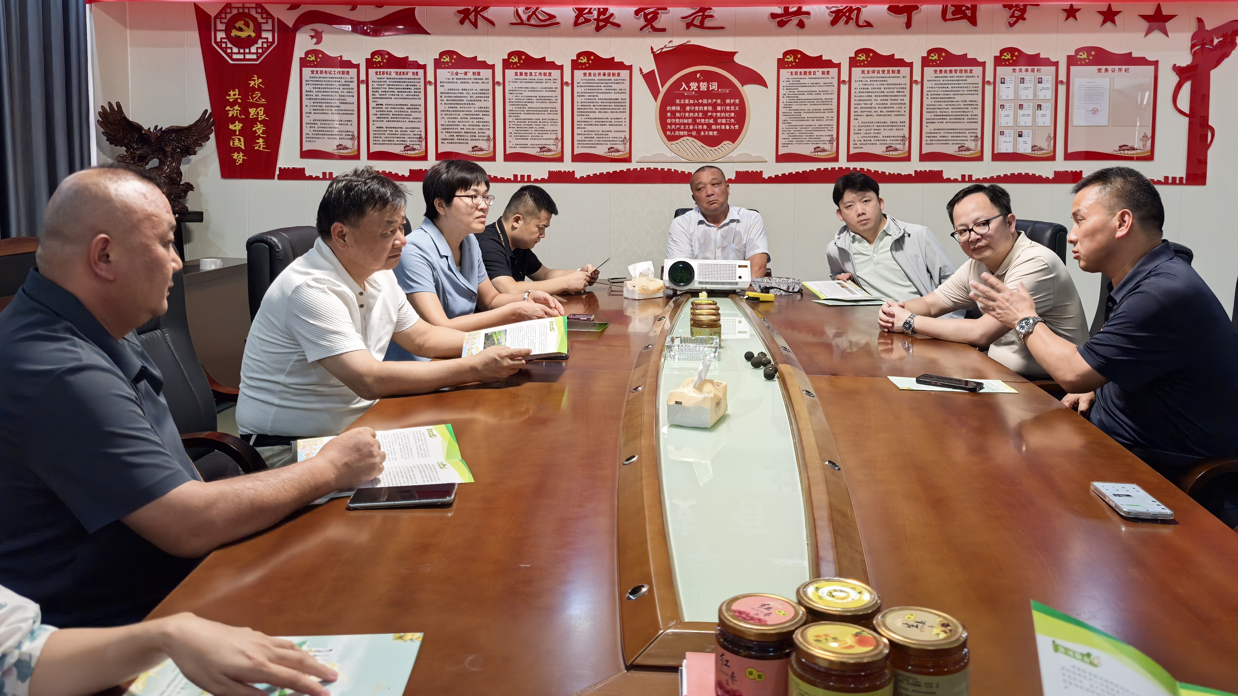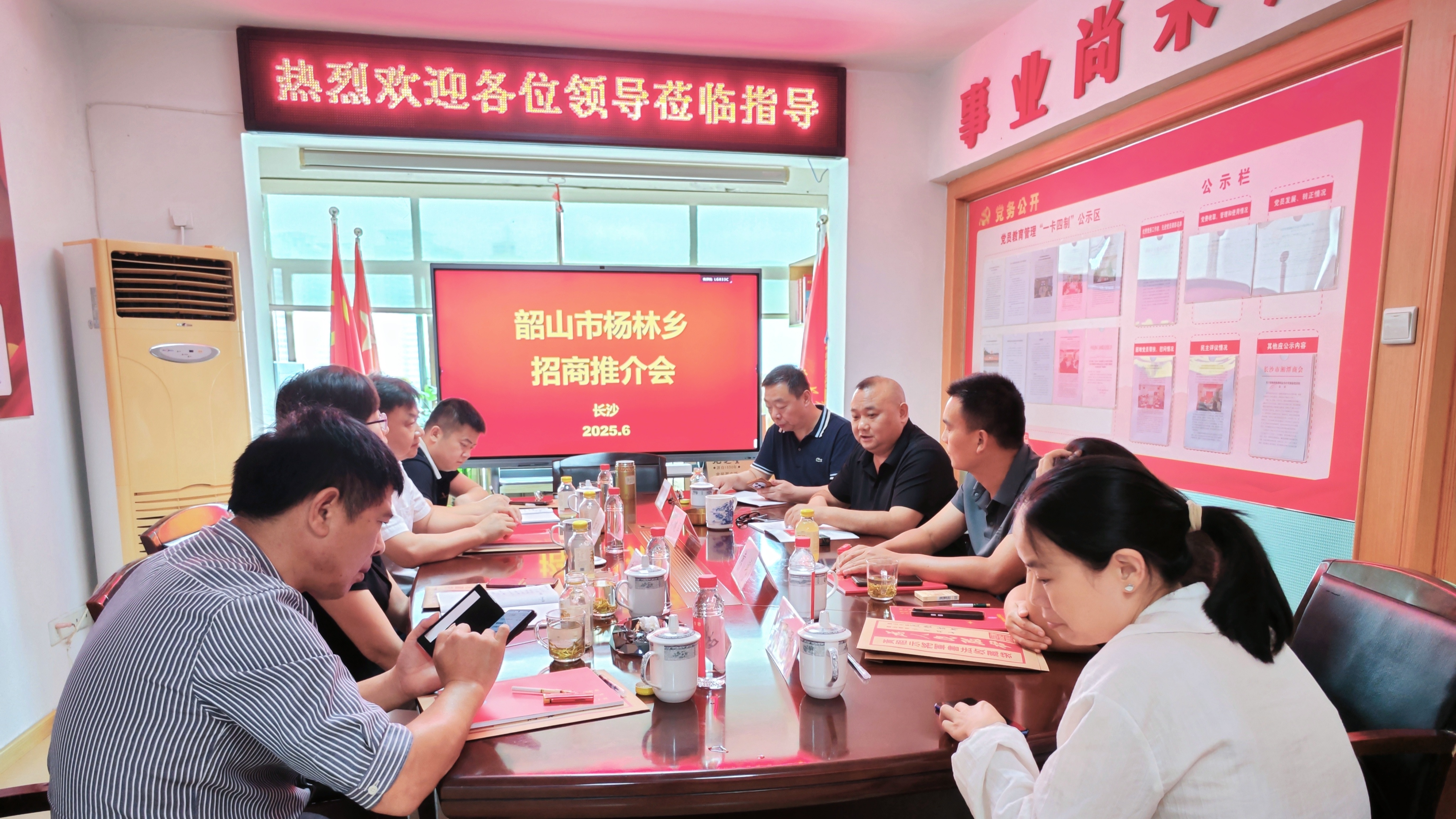 为深化政企交流合作,共绘乡村发展蓝图,6月25日,韶山市杨林乡招商推介座谈会在长沙市湘潭商会举行。湘潭市政协专职常委、市工商联二级调研员,驻韶山市杨林乡团田村工作队队长、第一书记章顺新;韶山市杨林乡党委书记郭莹、常务副乡长何华;湖南省企业文化促进会执行会长、长沙市湘潭商会会长谢建军,长沙市湘潭商会秘书长刘迎等人参加座谈。