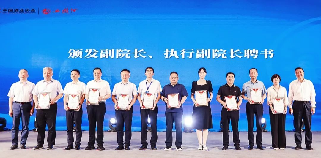 会上,杨广亭为朱蓓薇院士、宋书玉理事长颁发了中国酿酒原料及品质安全研究院院长、名誉院长聘书;宋书玉、景耀平为江南大学教授徐岩、中国食品发酵工业研究院副院长郭新光、西北大学食品科学与工程学院院长岳田利、西北农林科技大学食品学院院长吕欣、天津科技大学生物工程学院院长罗学刚、江南大学研究员范文来,陕西科技大学食品科学与工程学院院长李国梁、西凤股份公司总技术顾问贾智勇,国家级白酒评委、国家酿酒大师王科岐,西凤股份公司总工程师冯雅芳颁发了中国酿酒原料及品质安全研究院副院长、执行副院长聘书;朱蓓薇、张昭为陕西科技大学校长李志健,天津科技大学校长路福平,中国酒业协会白酒技术创新战略发展工作委员会秘书长王旭亮,西北大学城市与环境学院院长宋进喜,陕西科技大学农产品加工技术研究院院长陈雪峰,天津科技大学生物工程学院副院长张翠英,复旦大学工程与应用技术研究院特聘教授孙云权、西北农林科技大学生命科学学院副教授秦宝福颁发了中国酿酒原料及品质安全研究院首席科学家聘书。