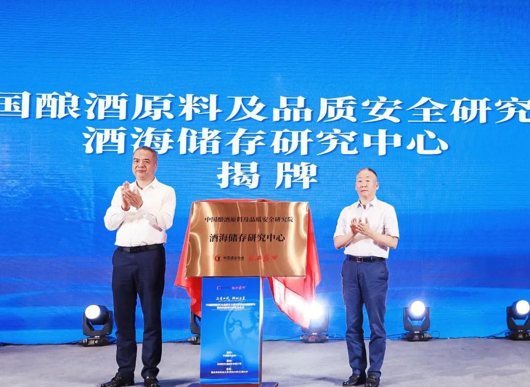 中国酒业协会白酒技术创新战略发展工作委员会秘书长王旭亮宣读了关于成立酒海储存研究中心的批复;与会领导杨广亭、宋书玉共同为酒海储存研究中心揭牌。