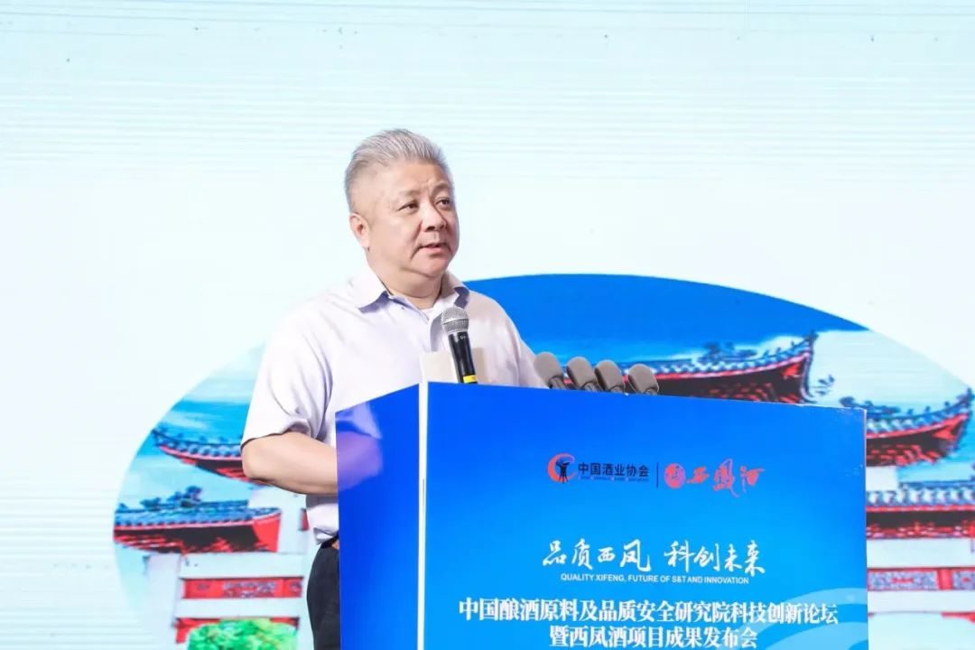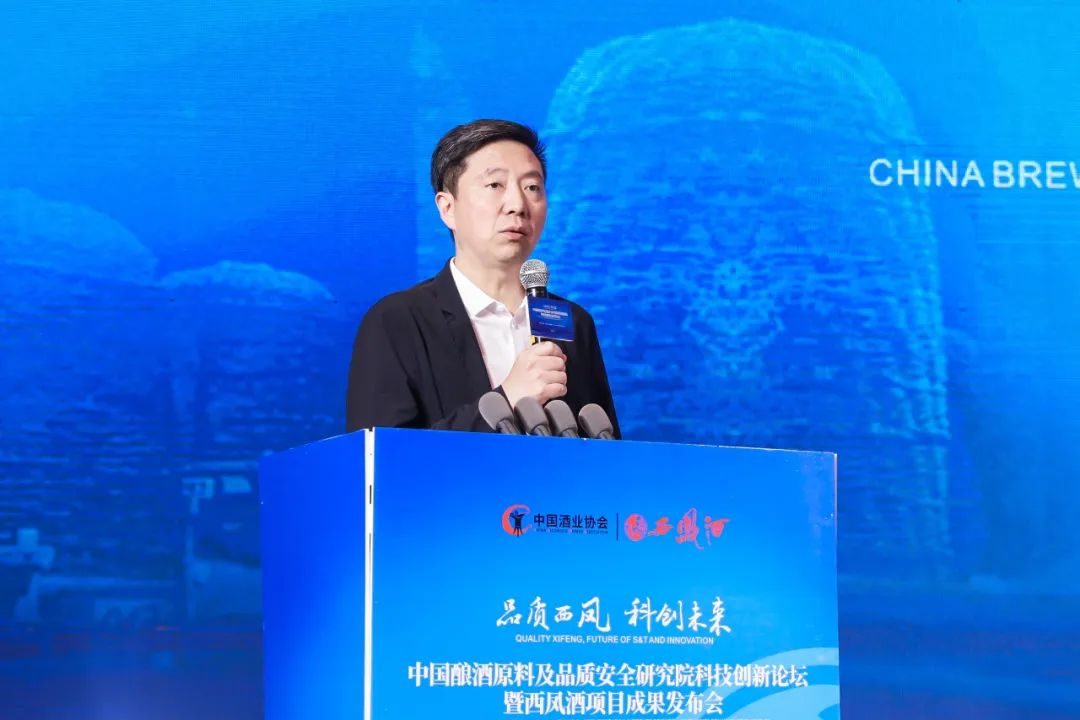 张正在致辞中,对各位领导、专家学者和特邀嘉宾的到来表示欢迎和感谢。他指出,名酒之名,先于品质。在中国酒业协会牵头下,西凤集团联合西北大学、西南大学等国内10余所一流高校院所,成立了中国酿酒原料及品质安全研究院。围绕“安全、健康、品质”的课题方向,从酿酒原料、产区环境、酿造工艺,到储存陈酿等方面,进行全方位研究与解读,构建了从田园到餐桌的全产业链研究体系,不断寻求健康品质与科技创新的完美结合。西凤集团将持续加大中国白酒品质建设力度,探本溯源,粮心酿造;科技赋能,智酿未来;产学融合,开创新标;健康饮酒,注重体验;发挥优势,创新表达,让幸福好酒走进千家万户,走进人民的幸福生活,打造中国白酒高质量发展新高地,为美好生活酿造品质美酒。
