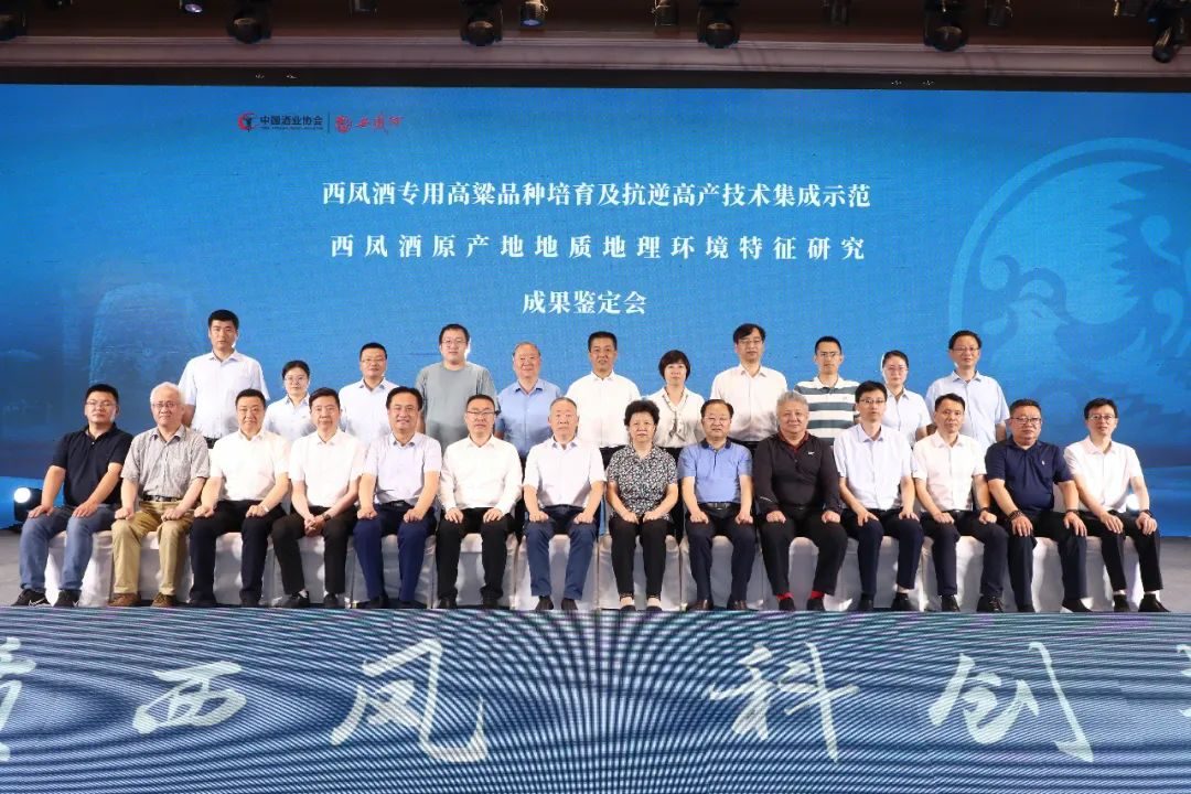 中国酒业协会秘书长何勇主持会议。会上,西北农林科技大学教授、原农业农村部小宗粮豆专家指导组组长、国家小宗粮豆鉴定委员会主任柴岩发布了《凤香型酒用高粱品种培育及抗逆高产技术集成示范》研究成果。该项目充分阐明了西凤酒专用红甸子高粱品种选育、优异酿造高粱鉴选、酿造高粱抗逆高产栽培技术研发与集成示范及凤香型酒用高粱品质评价等方面,所取得的一系列国际领先创新性研究成果;西北大学城市与环境学院院长、教授宋进喜发布了《西凤酒原产地地质地理环境特征研究》的研究成果。该项目成果指出,西凤酒厂位于东经107°,北纬34°,平均海拔830m,属暖温带季风气候,年均环境优良天数311天、日照时长2006小时、气温11.9 ℃,降雨量约612 mm,平均相对湿度可达69.4 %,拥有达百余米的富锶黄绵土层,平均年龄为6430年富锶地下水,得天独厚的自然环境与微生物种群是酿制高品质西凤酒的独特优势,成果达国内领先水平。