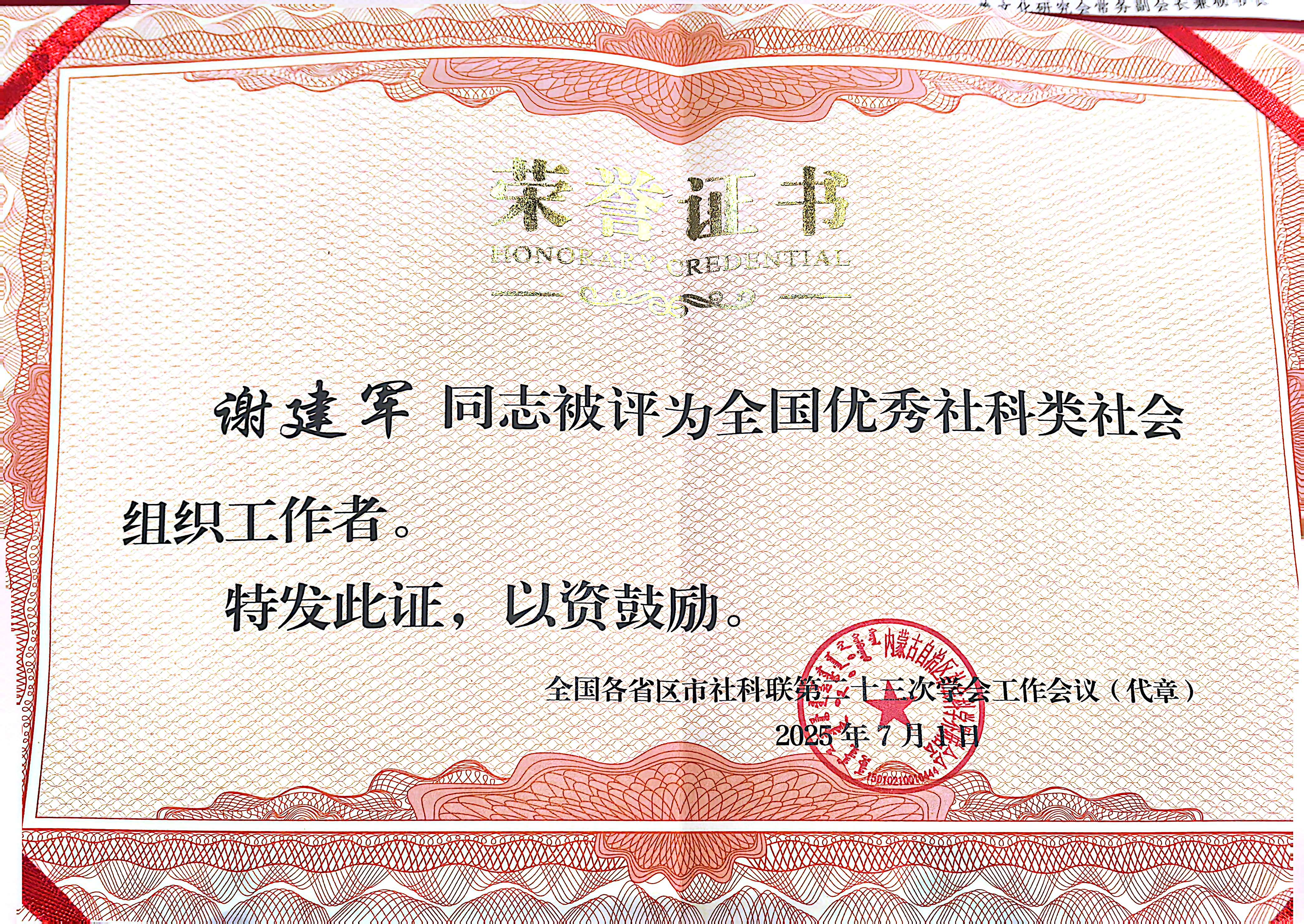 湖南省企业文化促进会执行会长谢建军获评“全国优秀社科类社会组织工作者”
